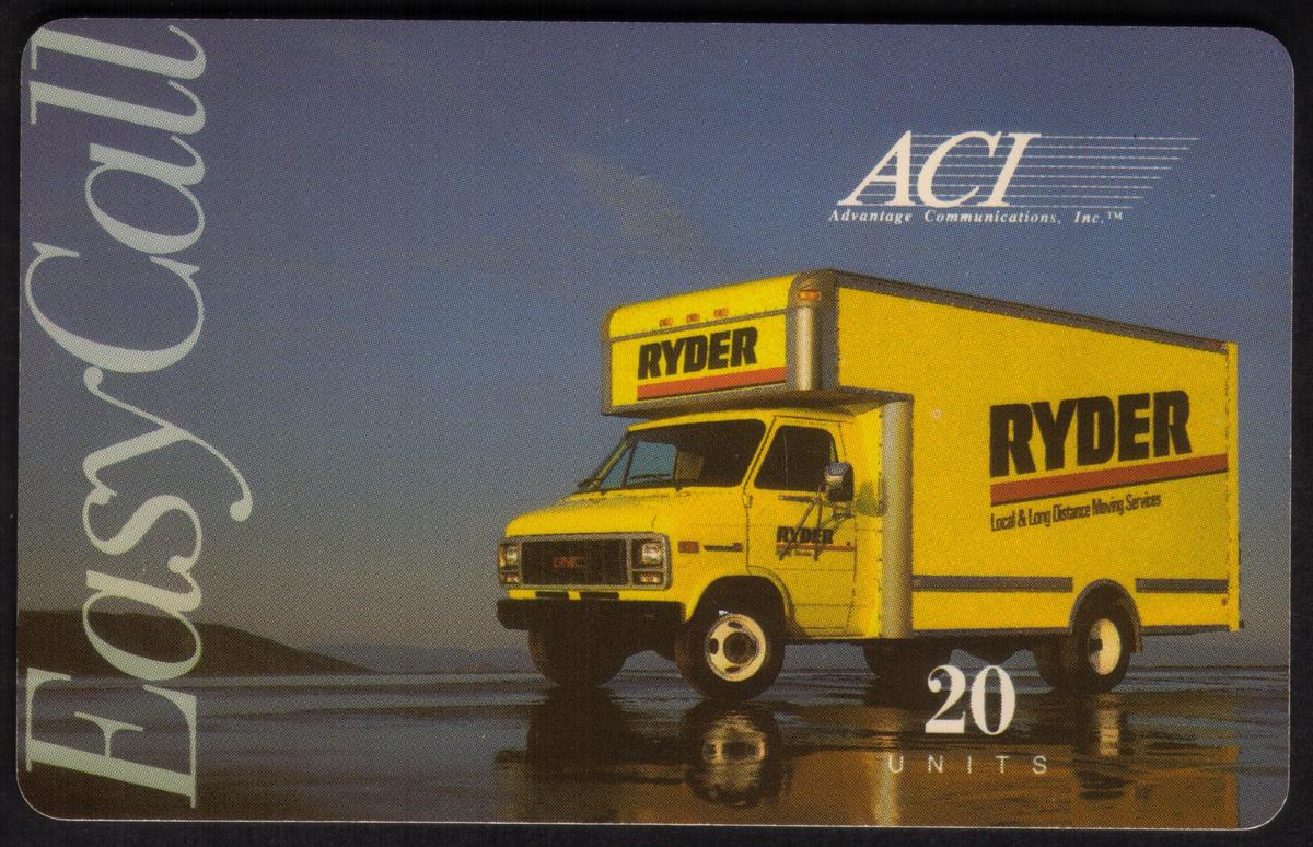This card combines themes of transportation, corporate advertising, and automotive commercial vehicles, making it a promotional collectible related to the Ryder Truck Rental company. The simple yet clear layout highlights both the EasyCall telecommunication service and the Ryder moving truck, emphasizing logistics and mobility.