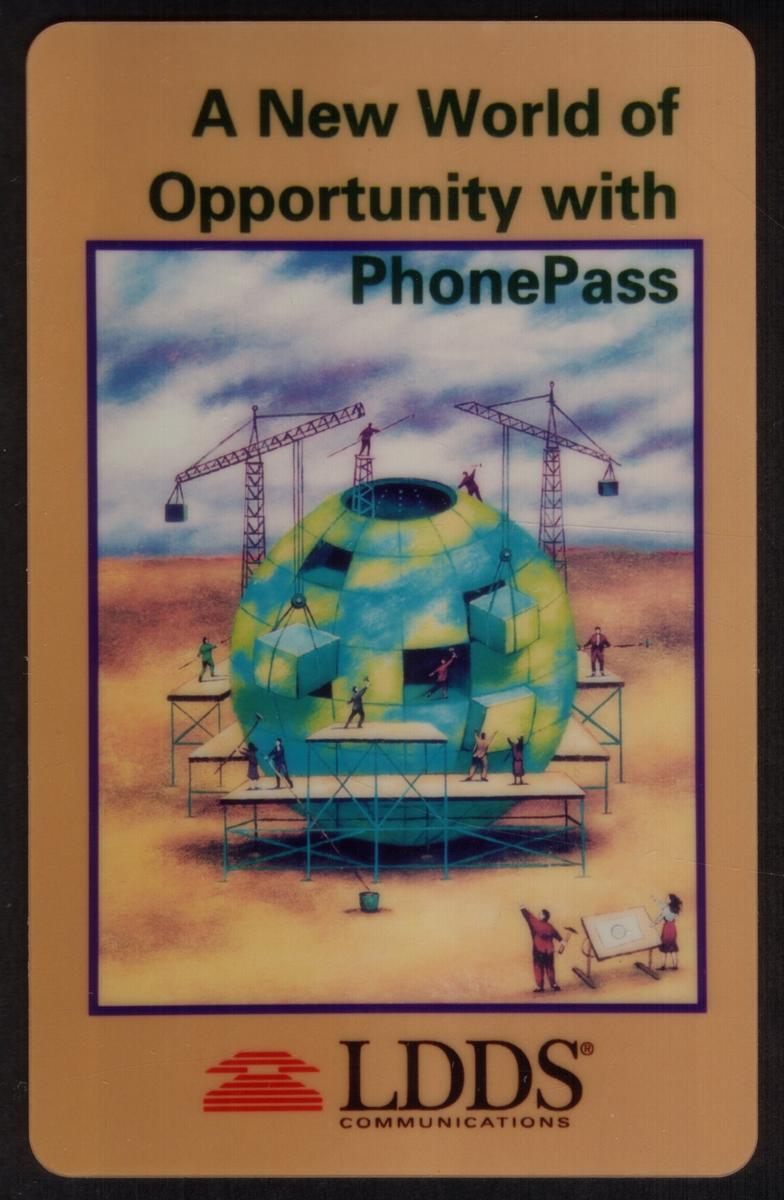 Prominently displayed across the card is the phrase "A New World of Opportunity with PhonePass," linking the visual theme to the concept of advanced telecommunication access. The location "Berlin" is clearly noted, indicating the card's connection with this city. Additional text references "LDDS WorldCom," the telecommunications provider associated with this card, firmly positioning it within the WorldCom network branding.