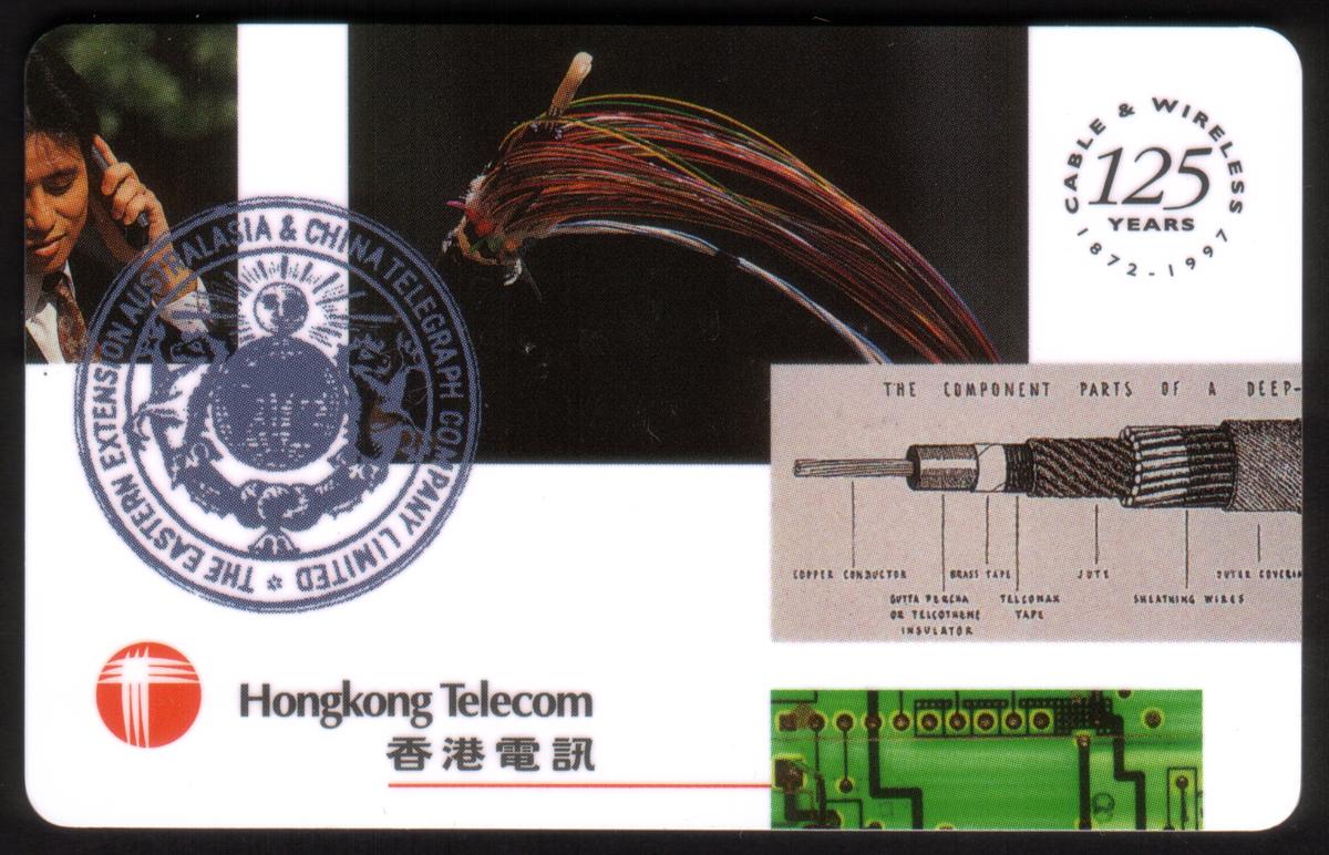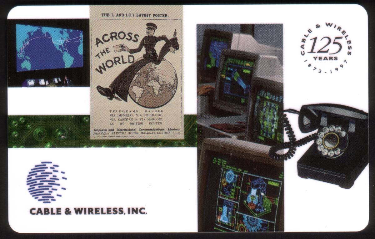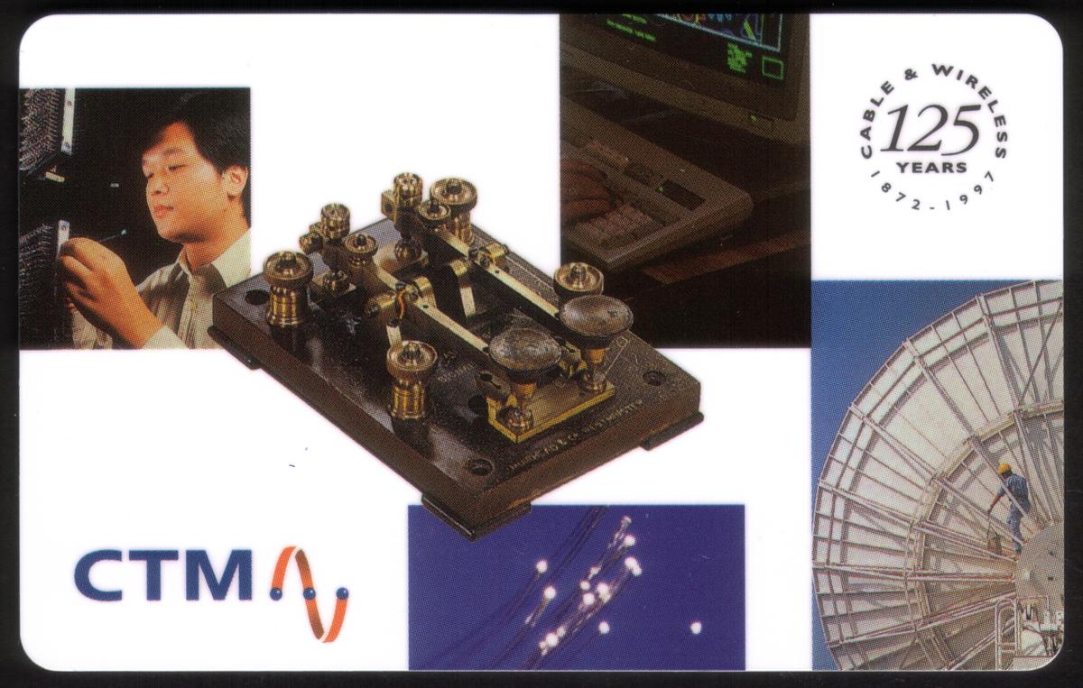 Promotional, hongkong telecom, telecommunications of jamaica, ctm, companhia de telecommunicacoes de macau sari, hong kong, satellites, ships, boats, phones on phonecards, telephones on phone cards, computer screens, satellite dish, 125th anniver, Cable & Wireless (CWI)