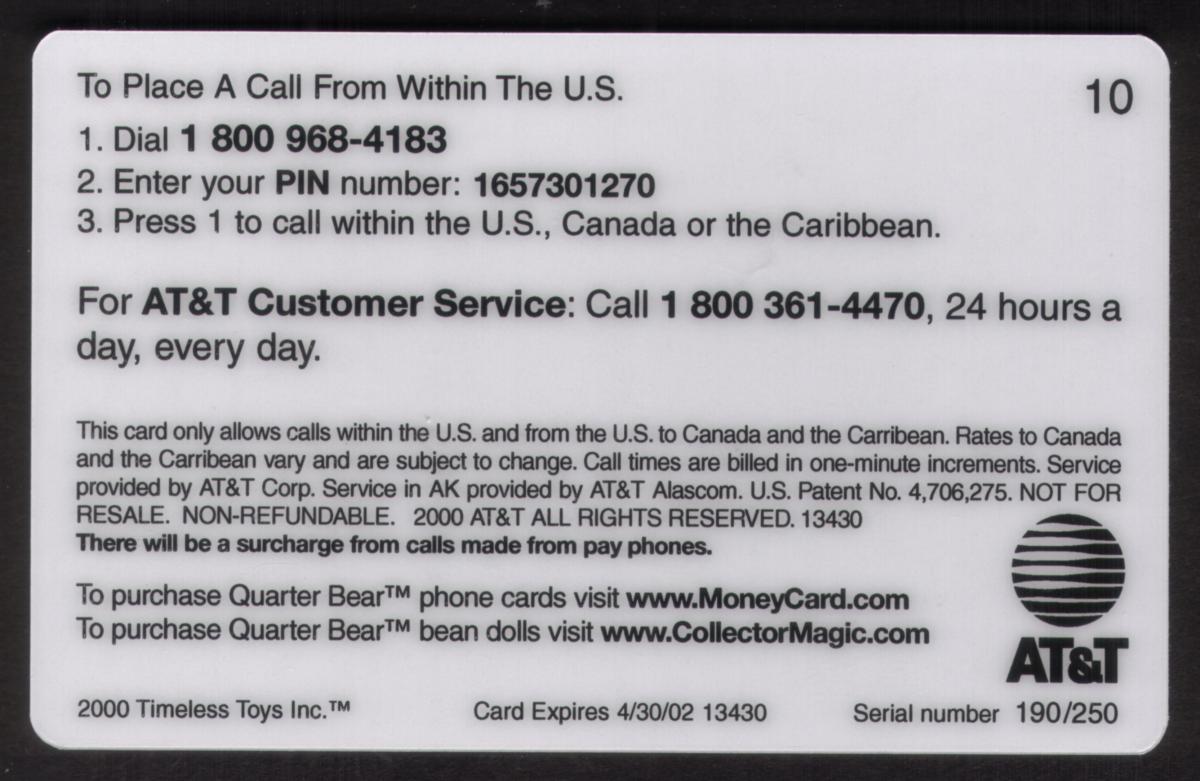 Since we have the world's largest inventory of USA phonecards for collectors, you will not necessarily receive the identical serial/batch/PIN number that we have scanned/pictured.