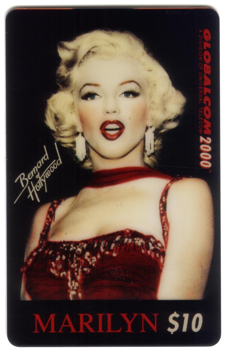 The card originates from the United States and has a denomination of $10. It was issued by Globalcom in 2000 and is marked as "USED." The design highlights Marilyn Monroe’s glamorous style, reflecting the artistic and entertainment themes associated with her legacy. The card also includes text referencing Christmas 1993, linking it to a holiday-themed release or celebration.