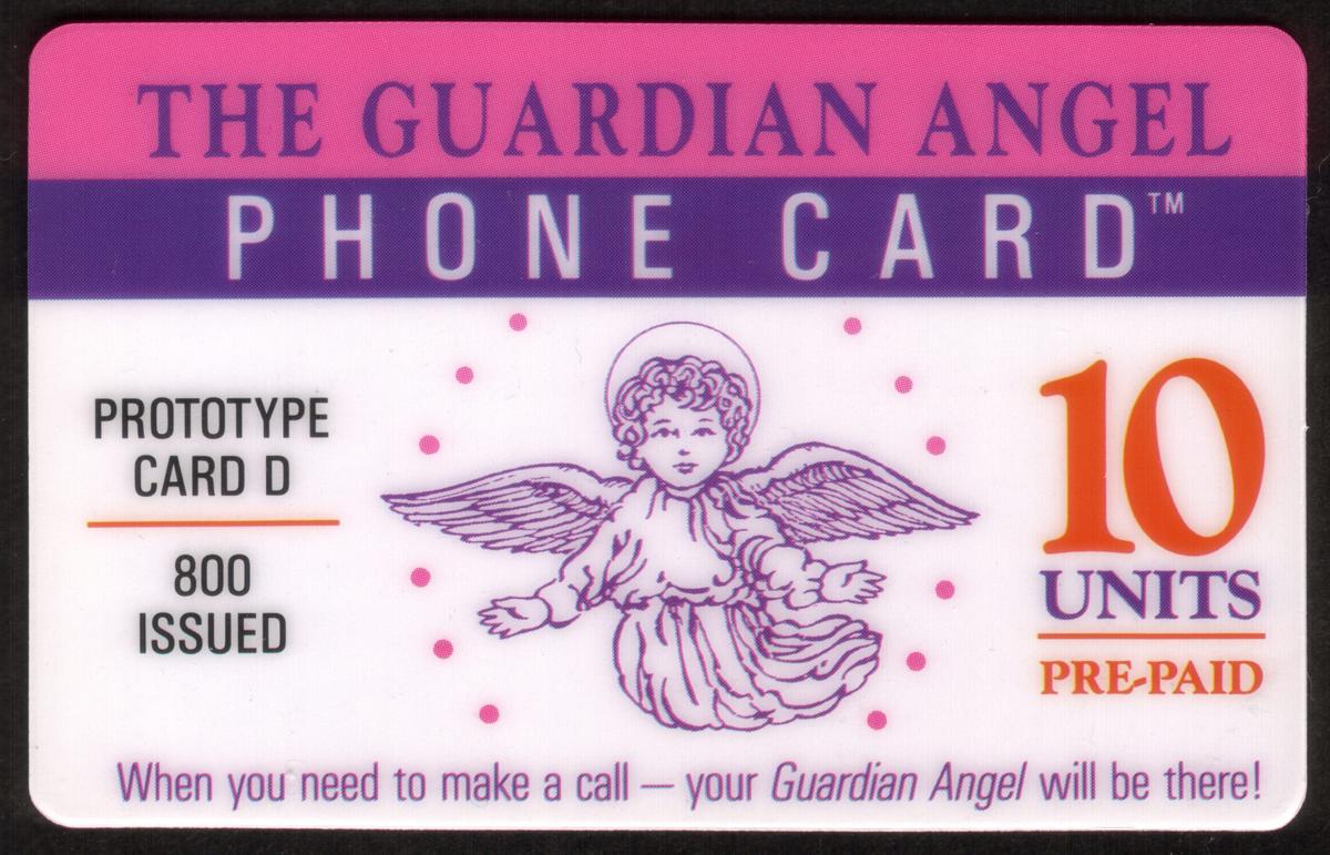 Overall, this set represents a collectible series of pre-paid phone cards themed around Christian spirituality and faith, specifically referencing the guardian angel motif. The cards incorporate clear text about their prototype status, issuance limits, and functionality as pre-paid calling cards issued by The Money Company, making them valuable collectibles related to religious and spiritual themes.