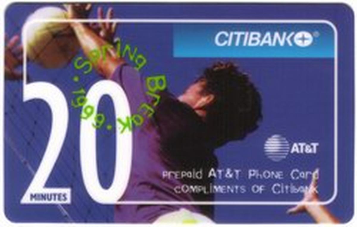 Overall, this specimen bank card combines branding from Citibank and AT&T with a volleyball motif centered on spring break 1999. It was issued as a complimentary promotional item, blending financial services branding with seasonal sports imagery.
