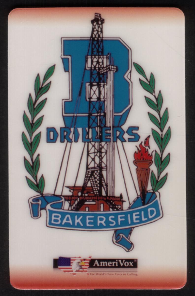 This collectible card features an image related to the Bakersfield Drillers High School Football team from California. The design includes prominent oil wells and oil rigs symbolizing the region’s connection to the oil industry. A large torch is also visible, adding a distinctive element to the visual theme. The card is a promotional proof issued by AmeriVox.
