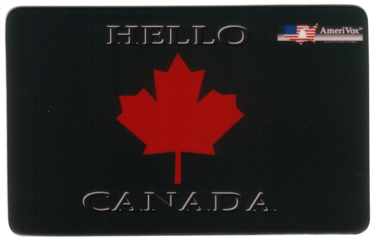 In the top right corner, the card specifies its value with "$20." printed in red. The lower right corner bears the name "AmeriVox," identifying the company linked to this collectible. The card's overall design is simple yet bold, focusing on Canadian national symbols and heritage through the iconic maple leaf.