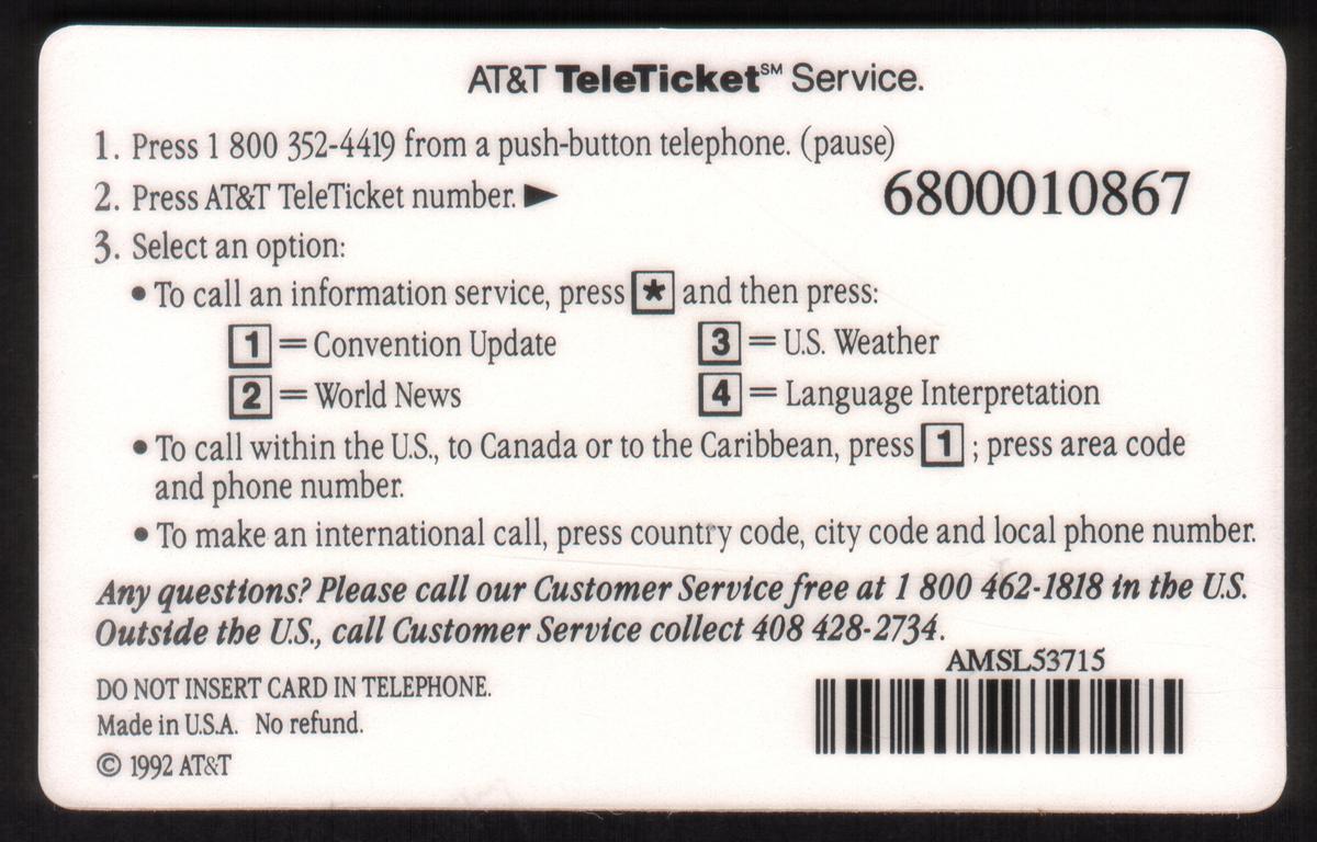 Since we have the world's largest inventory of USA phonecards for collectors, you will not necessarily receive the identical serial/batch/PIN number that we have scanned/pictured.