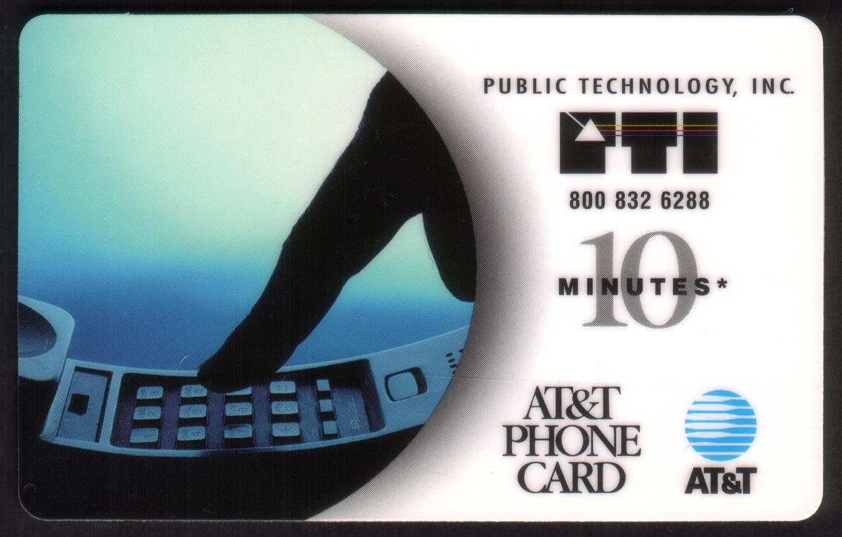 The card reflects a promotional theme centered on telephones, specifically dated to a period when the Princess phone was a recognizable consumer model. The layout combines photographic imagery with clear text and logos related to telecommunication services. This card serves as a collectible item representing a piece of telecommunications history linked to AT&T and Public Technology Inc.