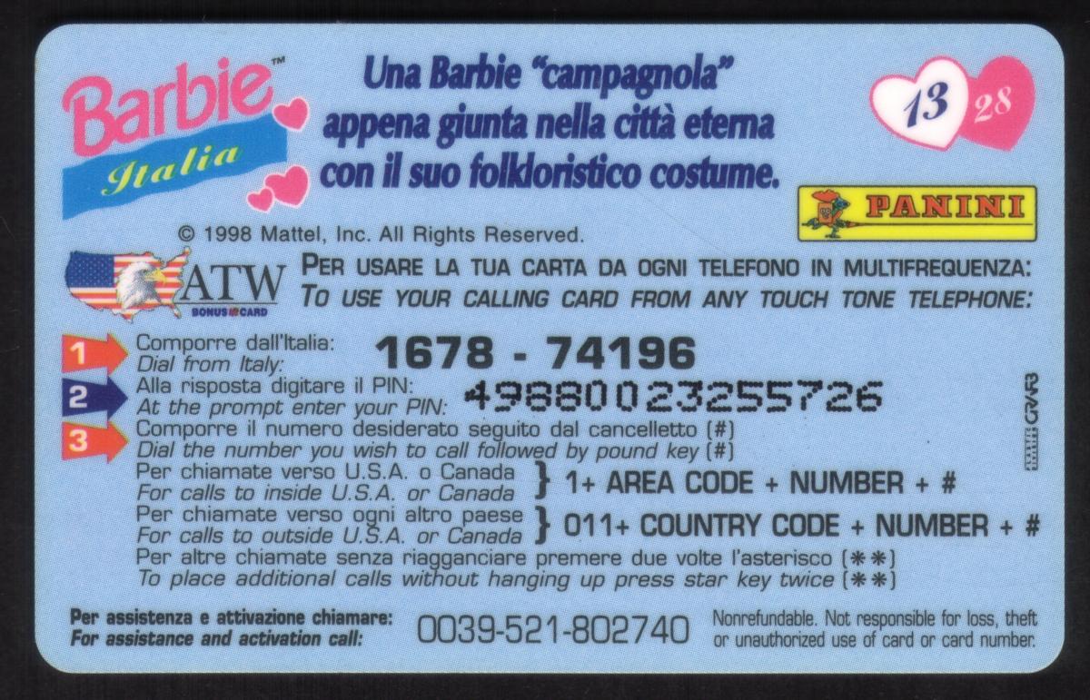 F90N, 1998 Mattel inc, barbie doll, italy, AmeriVox - ATW