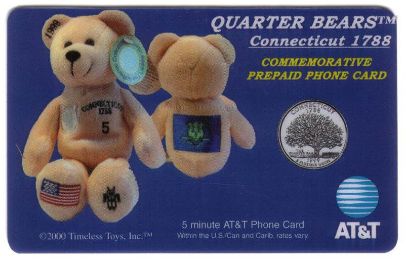 5m Connecticut (#5) State Quarter Bears: Bean Bag Toy, Coin, Flag.