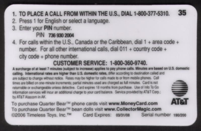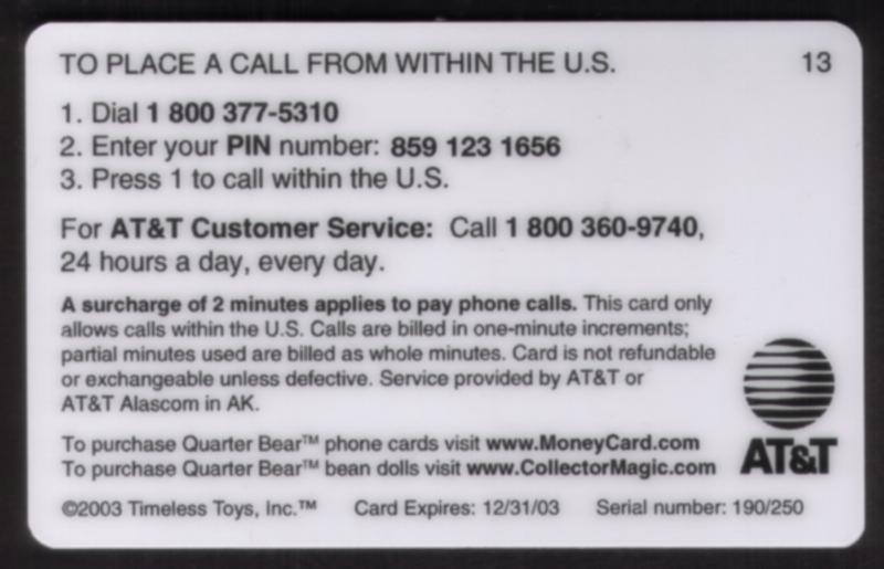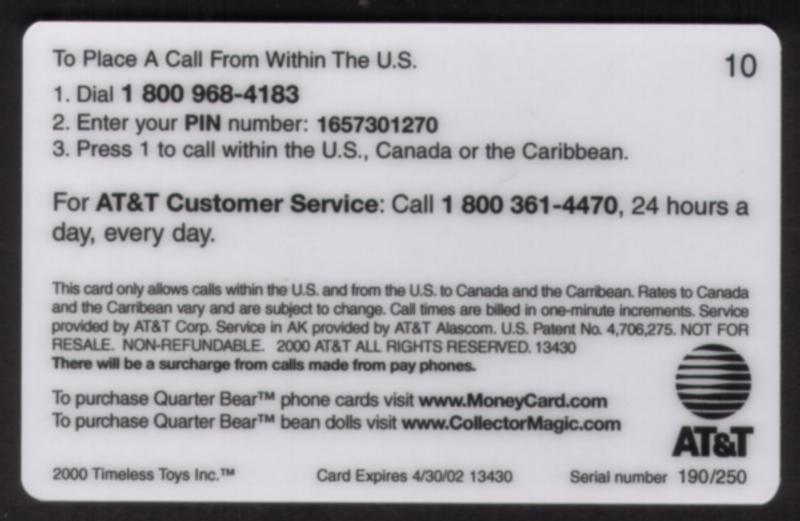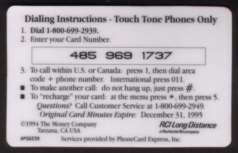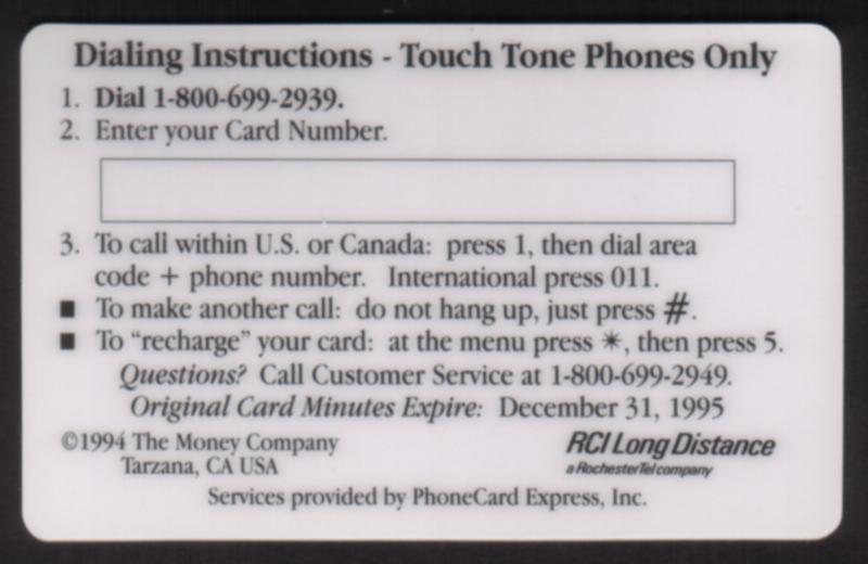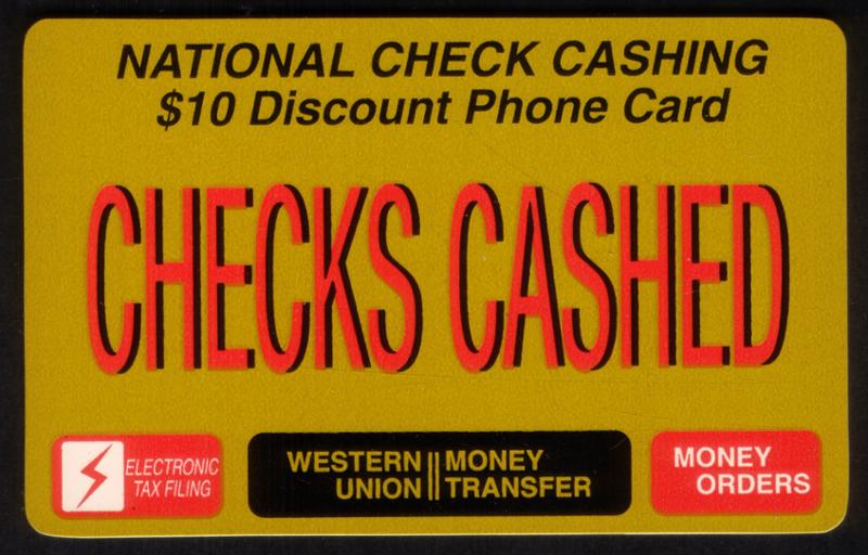 $10. National Check Cashing Discount Phone Card SPECIMEN
