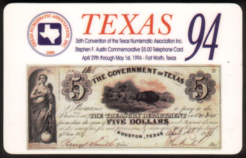 $5. Texas Numismatic Convention (April 1994) Treasury Note Currency