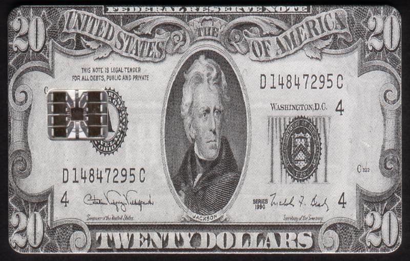 $20. Chip Card Picturing U.S. Currency With Andrew Jackson