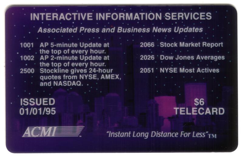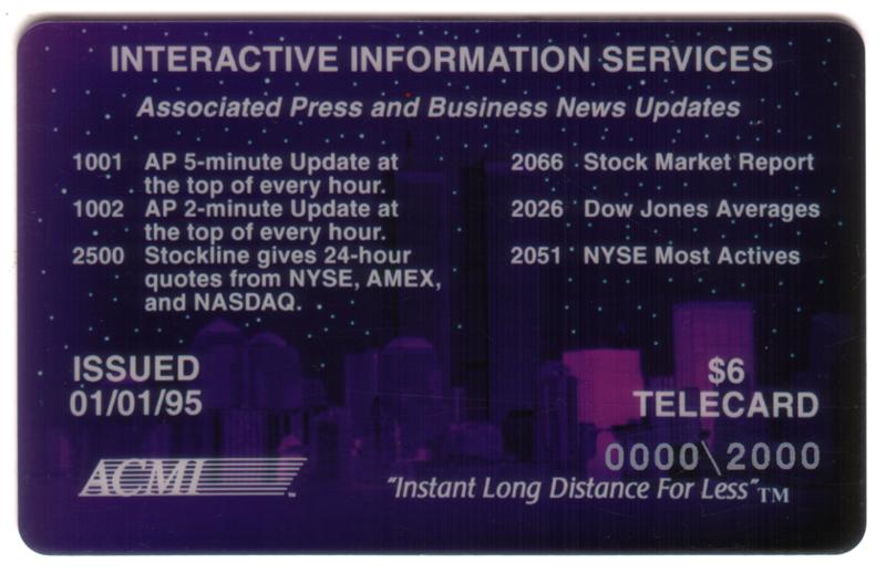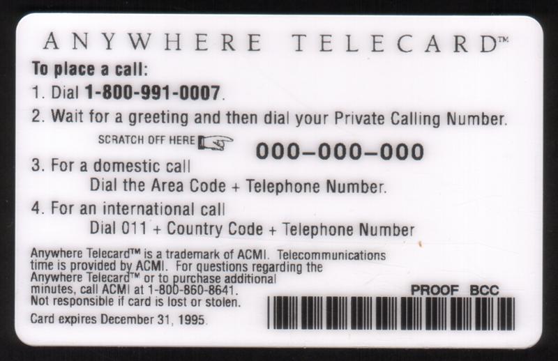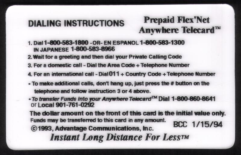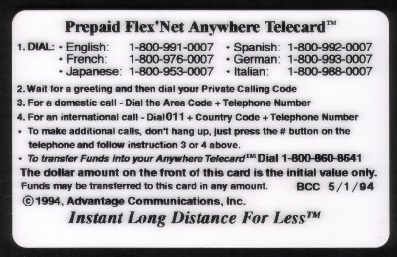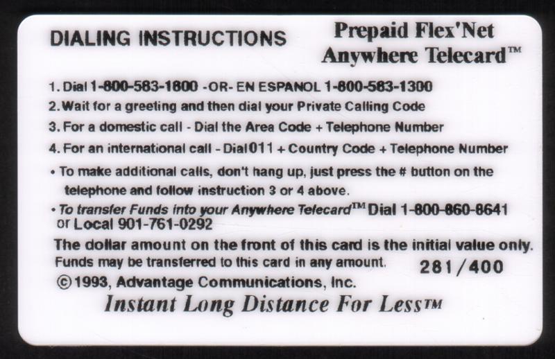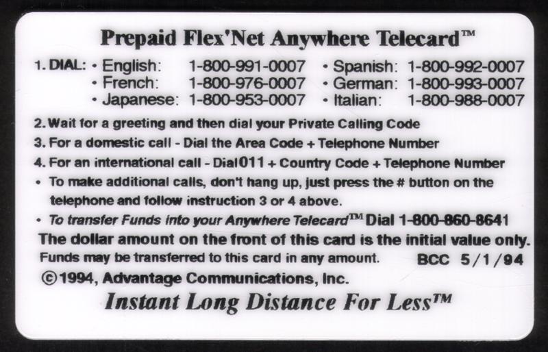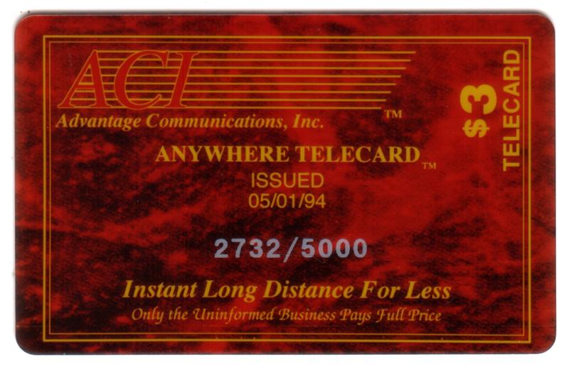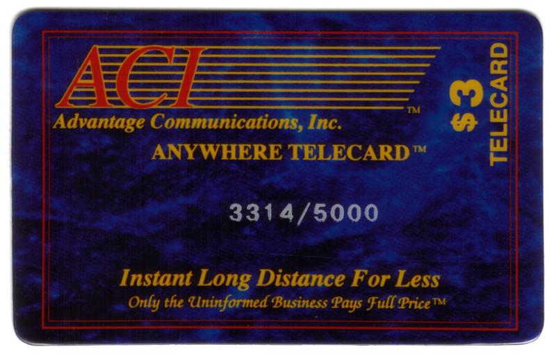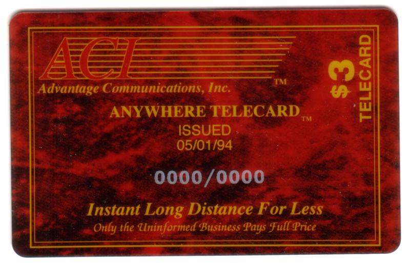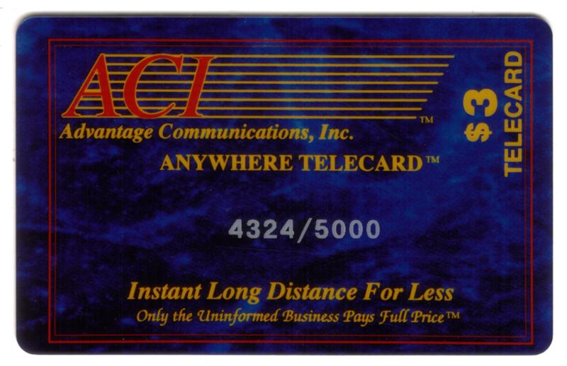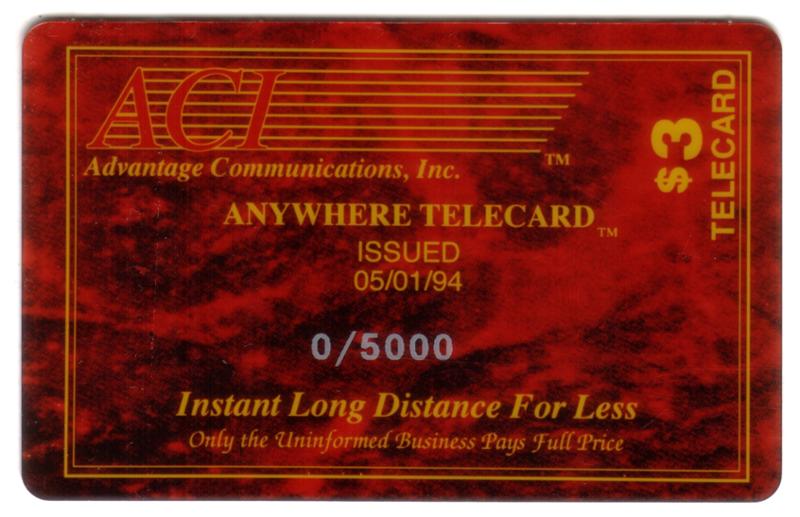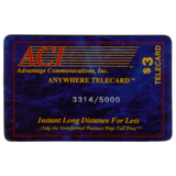 $3. Advantage Commun., Inc. Corporate Anywhere Telecard BLUE SPECIMEN