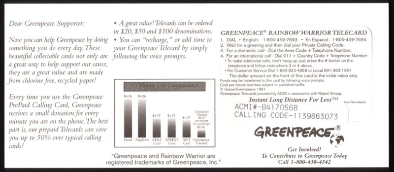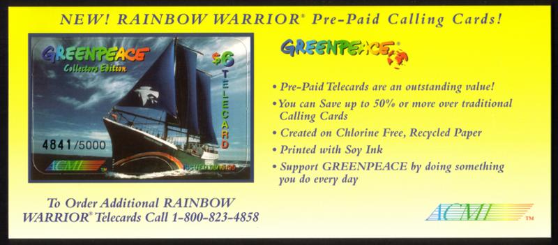 $6. GreenPeace - 'Rainbow Warrior' Ship (Paper Card)