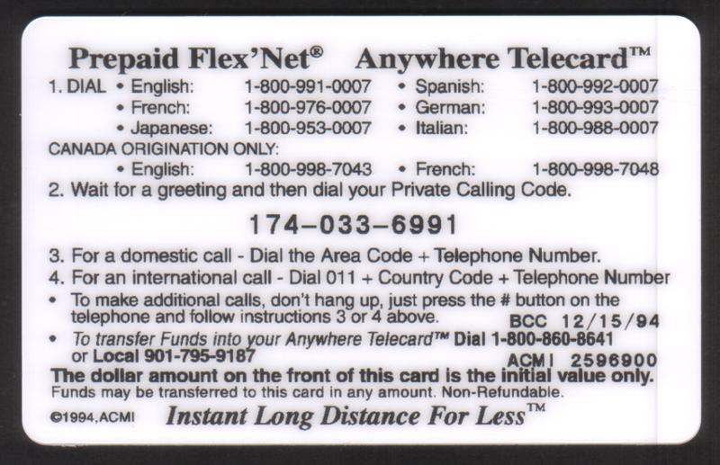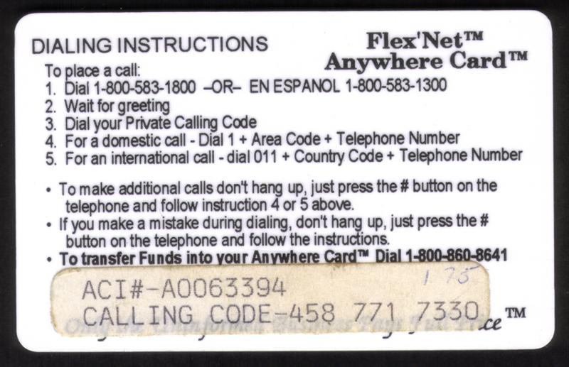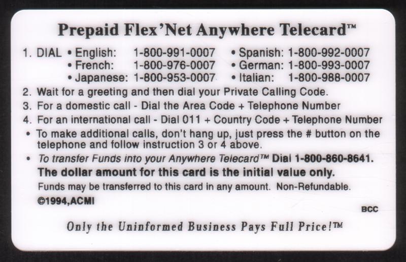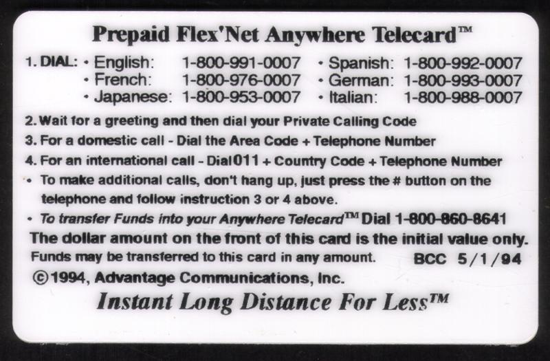Advantage Communications Inc FlexNet Anywhere Card (Typed ACI & CC #)