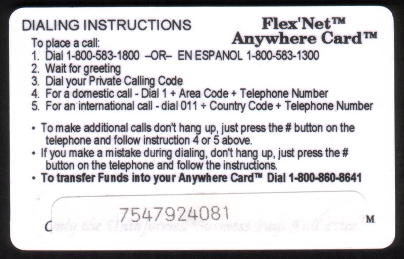 Advantage Communications Inc FlexNet Anywhere Card (Typed #'s) USED