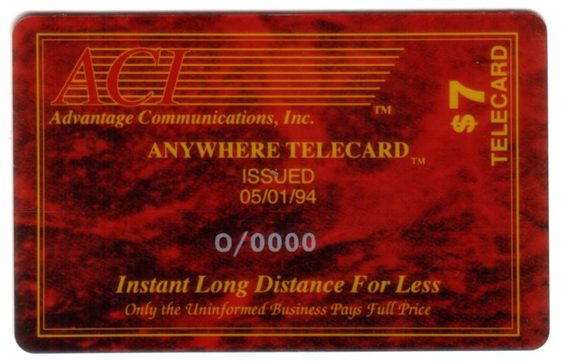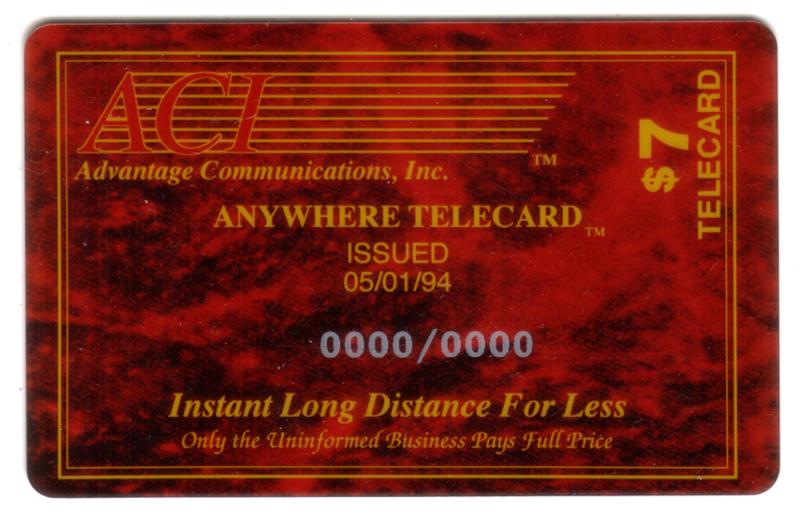 $7. Advantage Commun., Inc. Corporate Anywhere Telecard BLUE SPECIMEN