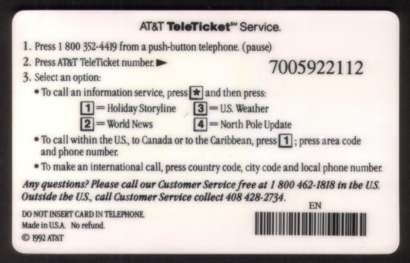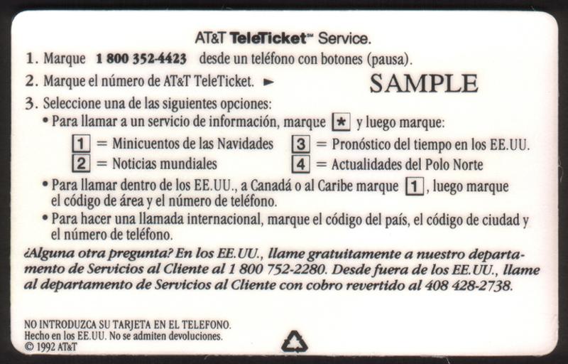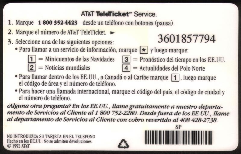 11057 ATT 148bS Unknown 10u 1992 Holiday Christmas Season All Wrapped Up 'SAMPLE' (Spanish)