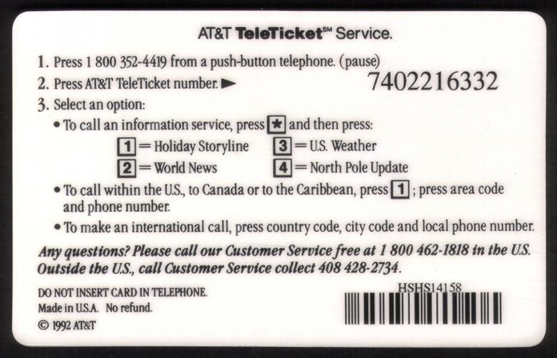 27161 ATT 152-1 Unknown 25u 1992 Holiday Christmas Winter Wonderland (English) Group 2 $250.00